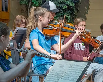 At First Sight focuses on God, the source of the gift of music. Our morning begins with Descant, which includes worship and hymn singing, sets the tone for each day. In order for students to share their gifts with others, community service concerts are part of the AFS schedule. AFS is non-denominational. Students of all faiths and backgrounds are welcome. At First Sight believes strongly that music at its heart should be cooperative, and thus the atmosphere is intentionally non-competitive.